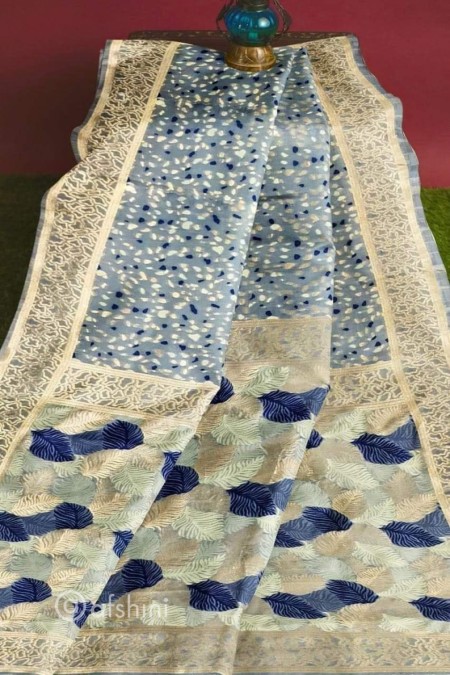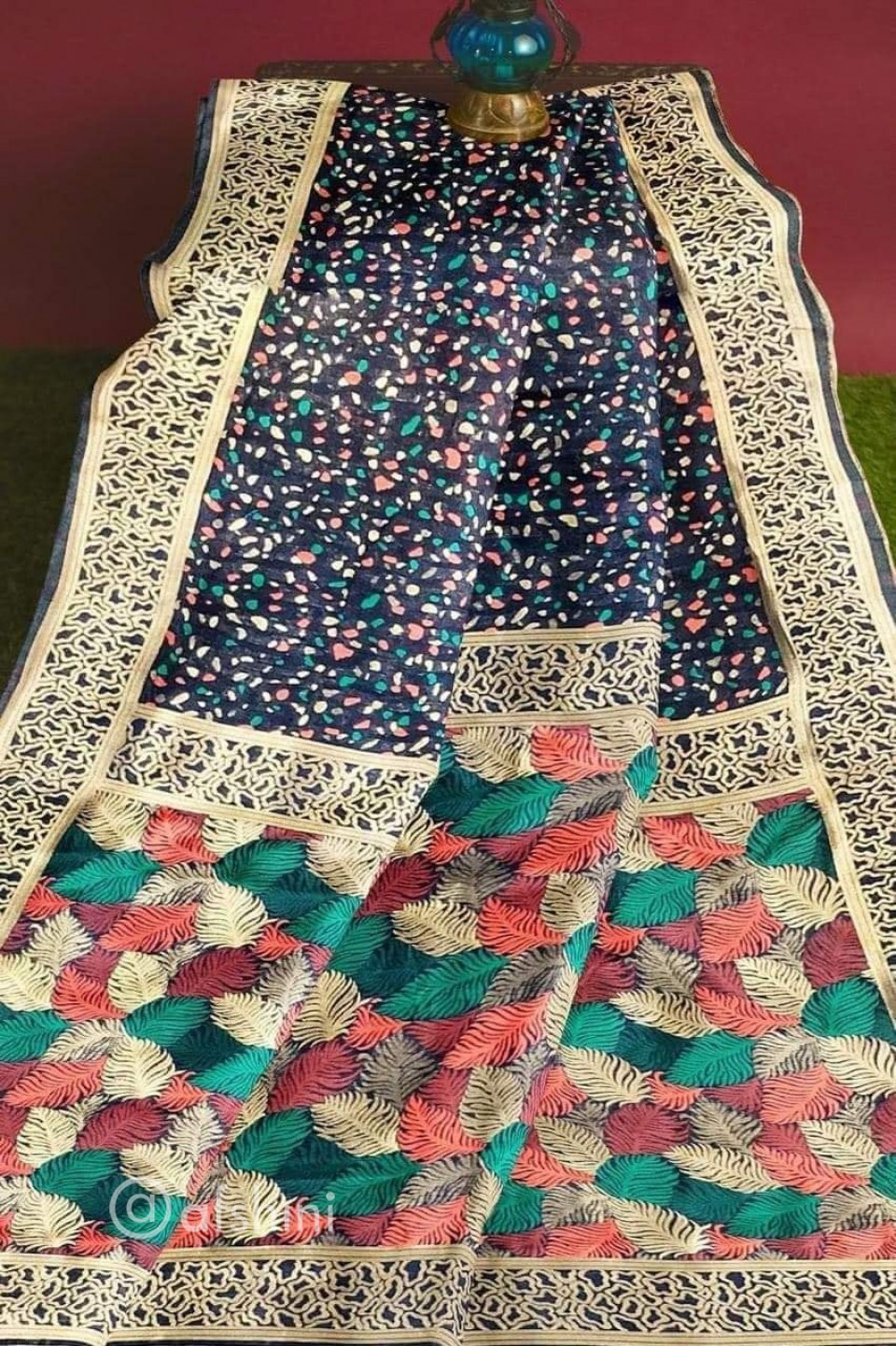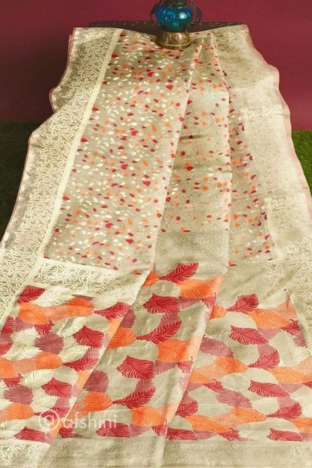 Yet again inspired design from LINEN COTTON featured in this shaded(PURE ZARI having a punch of DIFFERENT COLORS) semi banarasi weaving silk with original best quality..