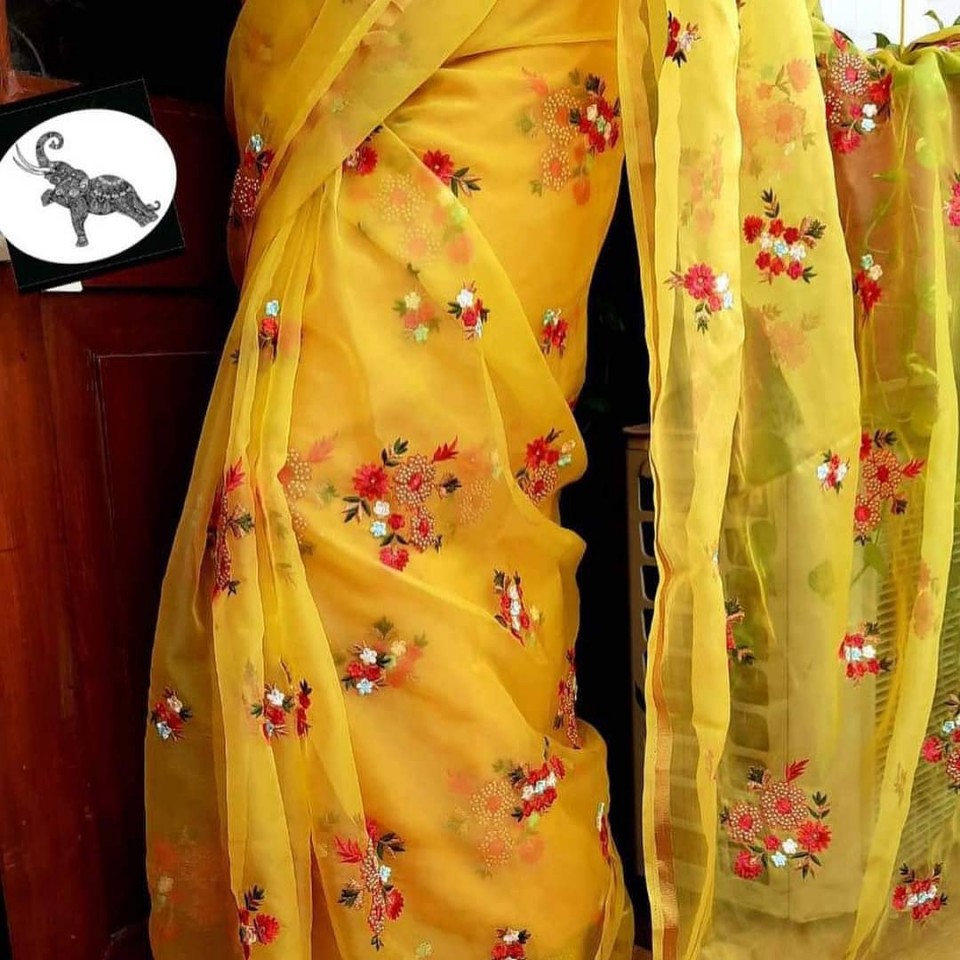 PURE ORGANZA SILK SAREE With FULLY Embroidery multi work all.over saree nd a pure Weaving zari silk blouse